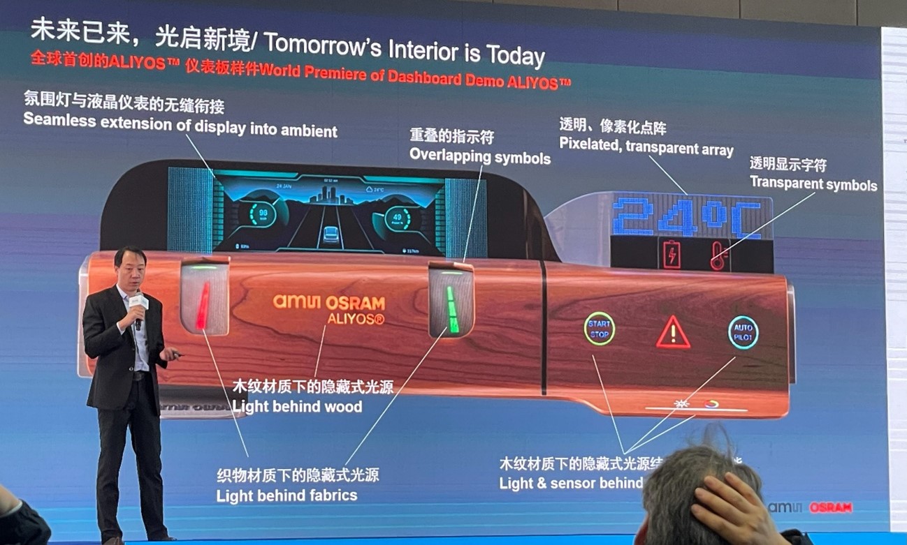 艾邁斯歐司朗相當看重中國市場需求,在本次37屆DVN 上海首次在中国展出ALIYOS 儀錶板樣件。透過與全球領先的汽車一級供應商和汽車製造商合作,共同探索汽車內部和外部照明的新可能性。