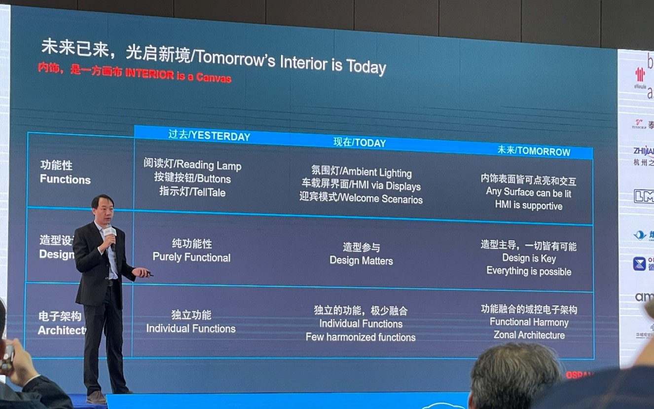 陳彥表示,內飾照明對車廠來說是一方畫布的呈現,藉由氛圍燈與 ALIYOS 更能全面體現個性化、功能化。不僅在功能上增加了交互性;造型上也呈現多樣化發展。