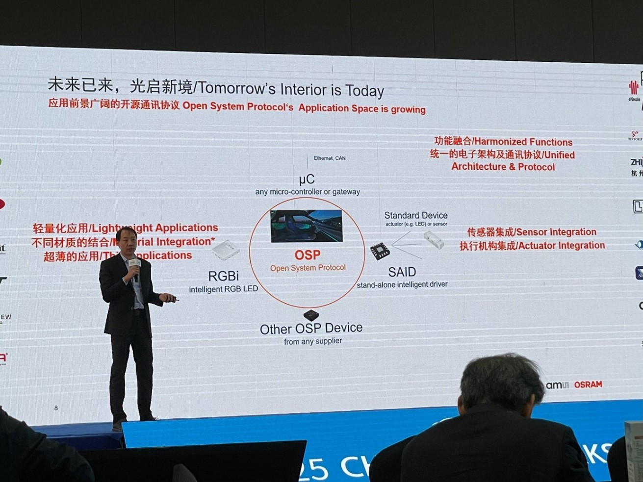 艾邁斯歐司朗的智能氛圍燈 OSIRE E3731i,提供開放系統協議 (Open System Protocol; OSP),微控制器能向每顆 OSIRE E3731i 發送指令並獲取狀態,實現高精度的顔色校準和溫度補償,且產品已成功導入領克 08、 極氪 007、極氪 009 光輝版、極氪 MIX等。