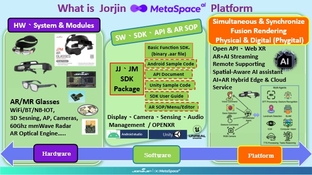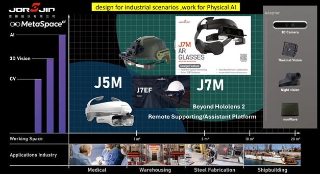 佐臻對於AR/MR領域的努力不僅止於眼鏡的研發與製造,自主IP,XR核心關鍵技術與專利,建構以開放式API、雲地混合架構的MetaSpaceai平台。生態系夥伴容易透過此平台開發與整合其AI方案 (Vertical AI Agent) 快速滿足場域客戶需求。在這個數位空間中,配戴AR眼鏡的使用者即使處在共同或不同的空間環境,透過MetaSpaceai平台,連結人、物和數位内容在空間虚實融合互動,跨越虛實界限,協助企業數位轉型,實現目前PC或手機,單純數據處理的差異化空間互動體驗。
