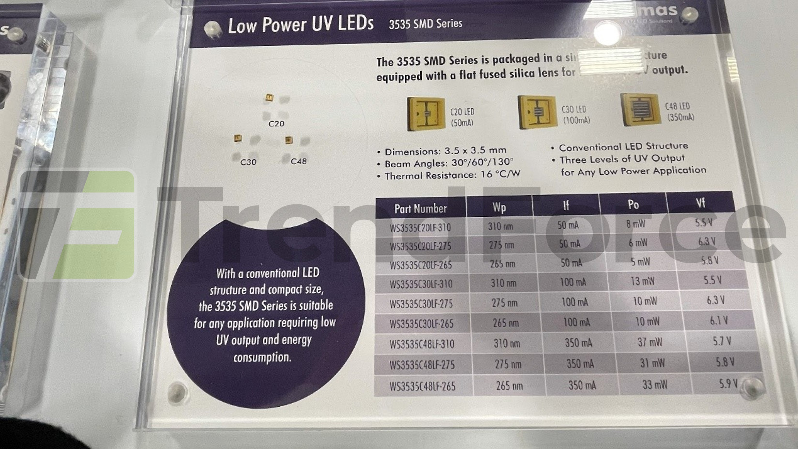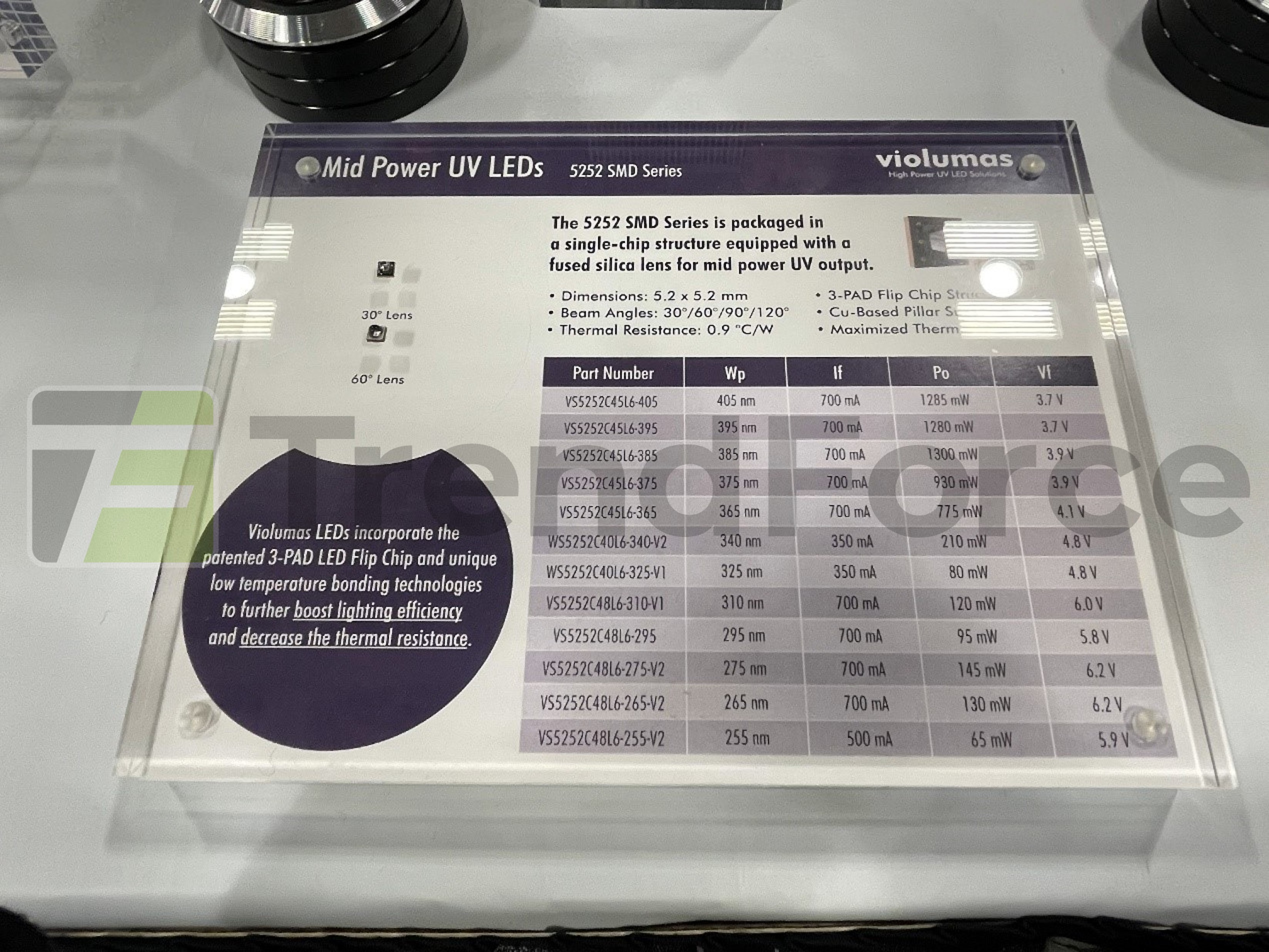 總部設在矽谷核心的Violumas是科范集團 (Cofan) 旗下的UV部門,專門提供全方位服務的UV LED產品系列及解決方案,涵蓋從UV LED到客製化模組。透過在覆晶LED和金屬基板PCB (MCPCB) 採用3-Pad整合式散熱結構,Violumas開發的UV LED產品成功達到快速散熱和更低熱阻,持續提供高性能產品更高的光學功率及可靠度,以滿足市場需求。TrendForce很榮幸能在2026年美西光電展 (Photonics West) 獨家專訪Violumas市場開發經理Saya Han,展示公司最新的產品進展,並分享對UV LED市場未來動態的見解。