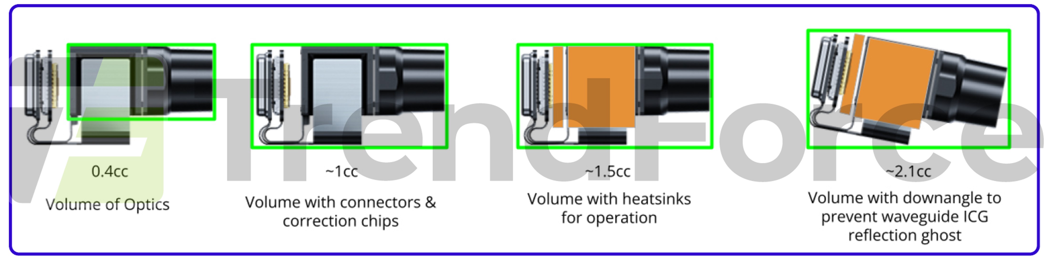 Tang表示,因為傳統的偏振分光鏡(PBS)本身有結構限制,所以Avegant在LCoS光引擎的設計上,選擇不採用PBS的技術路徑。Tang指出,PBS元件體積大又重,成本高,加上生產良率低,而且PBS稜鏡的光效率通常也較低。Avegant身為唯一成功在LCoS光引擎排除PBS的廠商,藉由排除PBS系統達到優異的光效率和成本控制。也是透過這項創新技術讓Avegant能夠把模組尺寸從1.4cc大幅縮小到0.7cc。