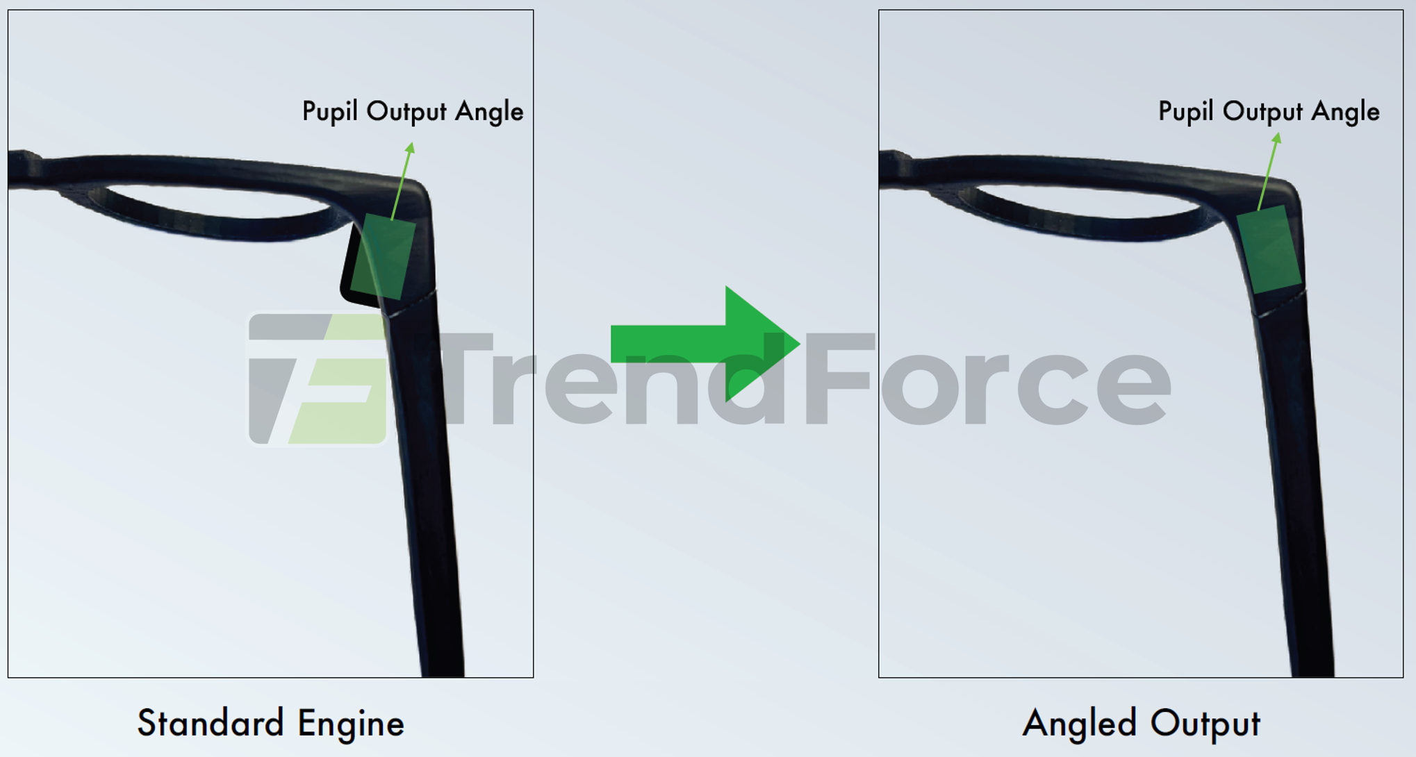 斜角出光能減少光波導漏光和消除光引擎的外型突起