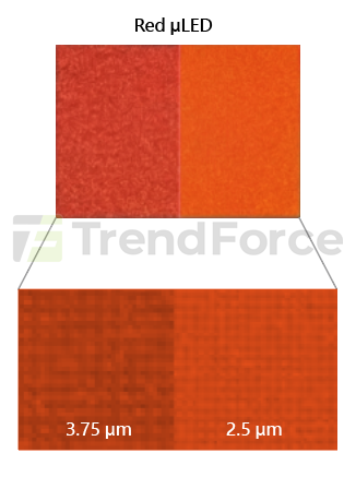 uLED像素間距(pixel pitch)比較