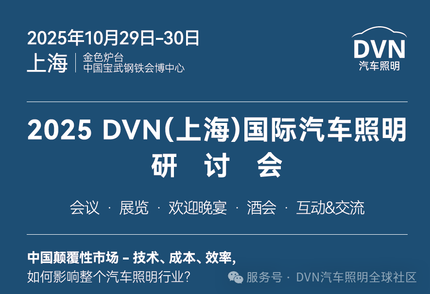 第37屆DVN(上海)國際汽車照明研討會將於10月29-30日在上海寶山區寶武鋼鐵會博中心金色爐台舉辦。主題為:中國顛覆性市場-技術、成本、效率,如何影響整個汽車照明行業?