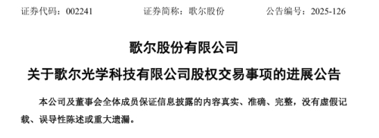 本次交易的順利完成,不僅優化了歌爾光學的股權結構與資本配置,更助力其夯實了在光學領域的研發與市場拓展基礎。未來,歌爾股份將繼續聚焦自身核心業務發展,而歌爾光學也將在多元化股東的支持下,進一步深耕光學產業鏈,為行業發展貢獻更多力量。