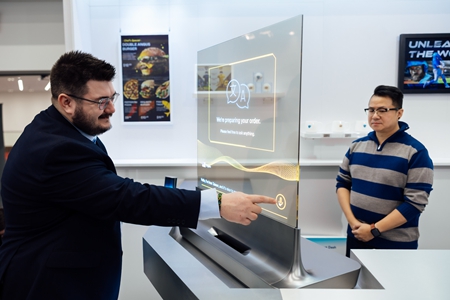 友達還展出了54英寸透明Micro LED智慧訊息看板,支持拼接顯示;42英寸Micro LED多語系AI互動翻譯系統,支持實時多國語言翻譯; 30英寸Interactive AR Box,采用Micro LED,透過3D呈現商品及數字信息,並整合人臉、手勢感應技術創造互動。