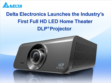 台達電日前在德國柏林「國際消費性電子產品展」(IFA),展出業界第一台高畫質LED家庭劇院DLP投影機,與Texas Instruments、Luminus Device合作,採用PhlatLight LED技術解析度達Full HD的1080p,正常使用狀況下,LED模組壽命約2萬小時。