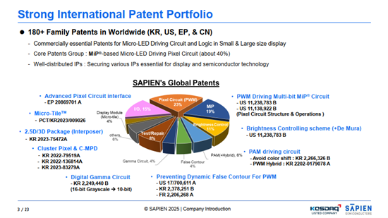 SAPIEN Semiconductors Inc. 成立於 2017 年,是一家無廠半導體設計公司,專注於為 Micro LED 顯示驅動器開發客製化 ASIC 產品與解決方案。該公司運用創新且已經在矽晶圓片上驗證的設計IP,為客戶提供完整為客戶提供涵蓋各種Micro LED顯示解析度及尺寸的完整解決方案。這些解決方案適用於從元宇宙到大型顯示器等各類應用領域。根據 SAPIEN Semiconductors 的專利組合,在近眼顯示應用中採用具備 PWM 的主動驅動 CMOS 架構,可有效降低功耗。此外,就大型顯示器而言,採用具備 PWM 驅動的Micro IC,不僅能更容易點亮 LED,還能避免驅動電流過低的問題。