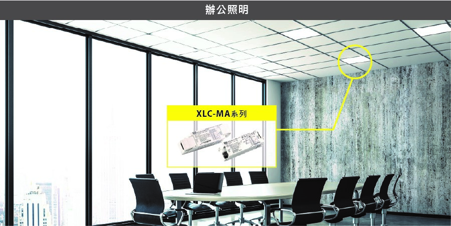▲ 明緯 XLC-MA 系列辦公照明電源,適用於現代化辦公空間,提供穩定、高效的照明解決方案。