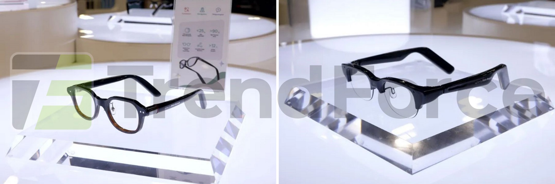 莫界科技的25g單綠AR眼鏡(左)和38g全彩AR眼鏡(右)