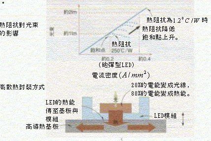 LED 的產熱量與光效無關;不存在百分之幾的電功率產生光,其餘百分之幾的電功率產生熱的關係。透過對大功率LED熱的產生、熱阻、結溫概念的理解和理論公式的推導及熱阻測量,我們可以研究大功率LED的實際封裝設計、評估和產品應用。需要說明的是熱量管理是在LED產品的發光效率不高的現階段的關鍵問題,從根本上提高發光效率以減少熱能的產生才是釜底抽薪之舉,這需要晶片製造、LED封裝及應用產品開發各環節技術的進步。