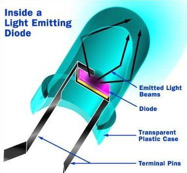 發光二極體,通常稱為LED。發光二極體只是一個微小的電燈泡。但不像常見的白熾燈泡,發光二極體沒有燈絲,而且又不會特別熱,它單單是由半導體材料裏的電子移動而使它發光。因為發光二極體沒有燈絲會燒壞,所以壽命就更長。並且發光二極體的小小塑性燈泡使得發光二極體更持久耐用,再加上LED可以更加容易適合現在的電子電路。傳統白熾燈的發光過程包含了產生大量熱量,這完全是浪費能源。發光二極體所發出的熱非常少,相對來說,越多電能直接發光就是越大程度上減少對電能的需求。