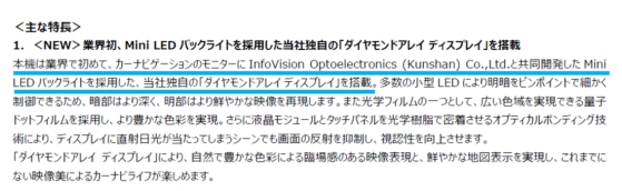 這是JVCKENWOOD首次在車載導航系統中公開采用Mini LED背光方案,由龍騰光電共同開發。龍騰光電提供的Mini LED顯示方案具備高亮度、高對比度和高可靠性等特性。