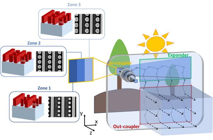 據悉,傳統AR波導耦合器因光線損失導致圖像暗淡。因此,團隊此次以超表面技術重新設計輸入耦合器,將其劃分為三個功能區段,每個區段都由納米級結構組成,可高效地引導並控制入射光。超表面厚度僅為人類頭發的千分之一,具備傳統光學元件無法實現的光線操控能力。