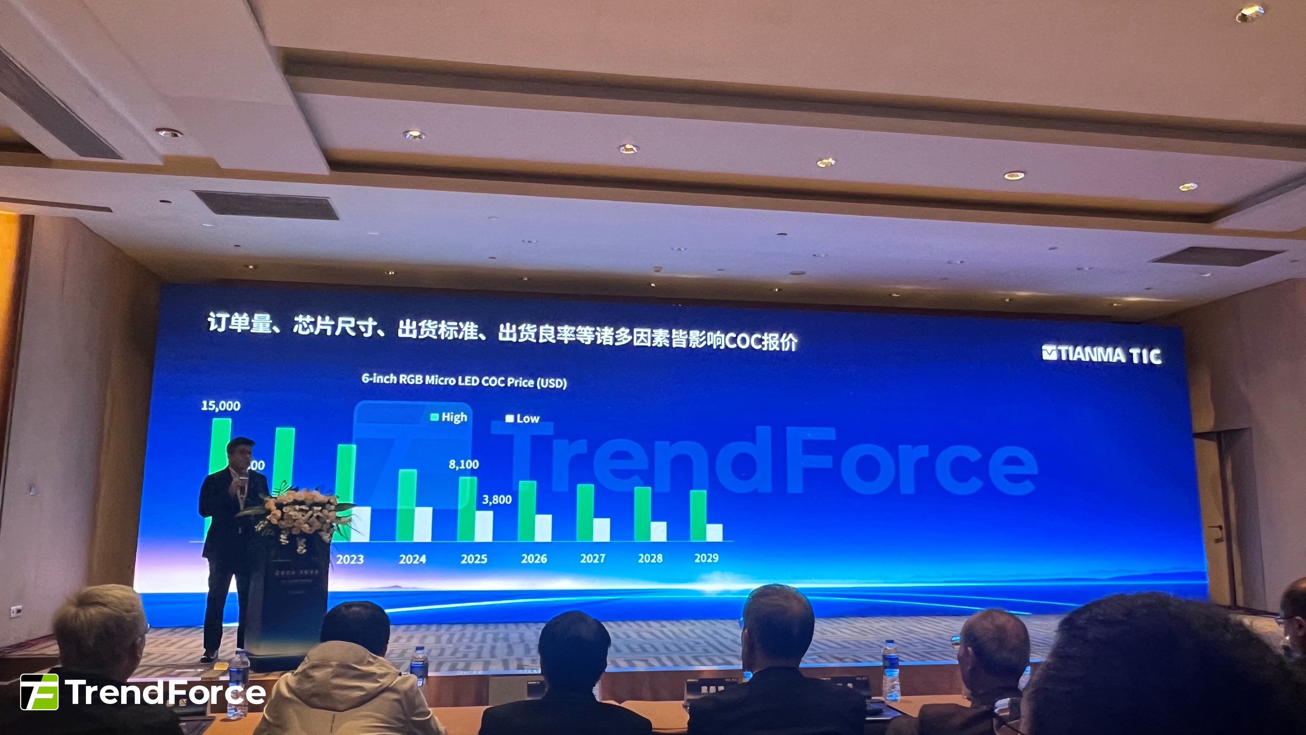 TrendForce集邦科技資深研究副總經理邱宇彬指出,以產業鏈角度來看,上遊芯片環節是Micro-LED技術降本的關鍵。過去兩三年,6英寸RGB Micro-LED COC報價降幅已逾50%,芯片尺寸微縮化手段的應用提升了芯片產量,進一步推動了芯片降本效益。