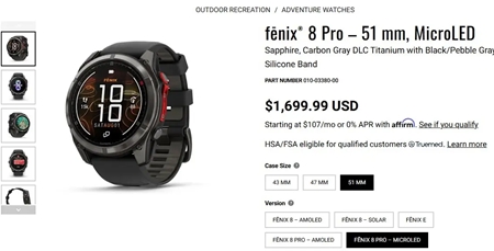 2月23日,外媒消息,運動設備公司佳明(Garmin)近期正式下調其旗艦級戶外智能手錶Fenix 8 Pro的部分型號售價,此次調價主要針對搭載Micro LED顯示技術的51毫米高端版本產品。