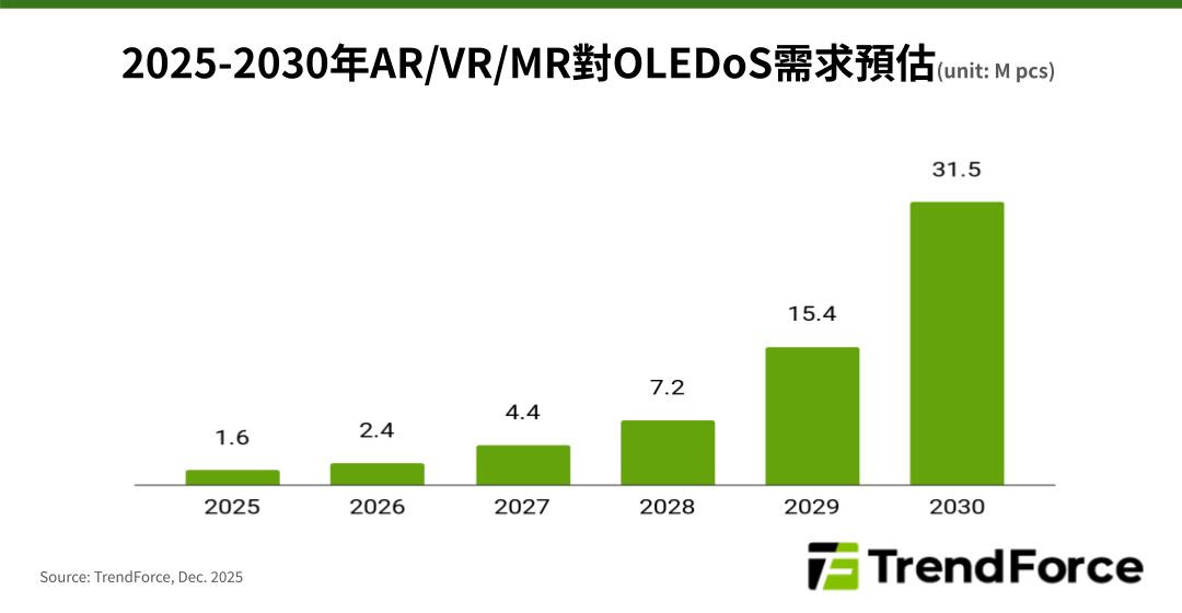視涯科技(SeeYA) IPO申請近日獲得上海市證券交易所審核通過,擬募資20.15億元人民幣,用於擴建OLEDoS顯示器產線與研發中心。根據TrendForce統計,AR、VR、MR等近眼顯示裝置對OLEDoS微顯示器的需求有望於2030年達到3,150萬片,2025至2030年複合成長率(CAGR)高達81%。