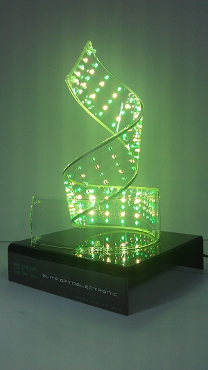 為了進一步發揮透明可撓式LED燈板的特色,宇亮光電於2013年開發出全球第一款的透明螺旋桌燈與透明螺旋吊燈,適合應用在餐廳、旅館、大廳或是房間內作為室內裝潢用的裝飾燈具,可使室內有美觀、大方、簡約的空間感。於2013年底推出至今已吸引了德國、美國、英國、日本等地的關注。宇亮光電期許透過材料的變化,能使生活更加地圓融美滿。